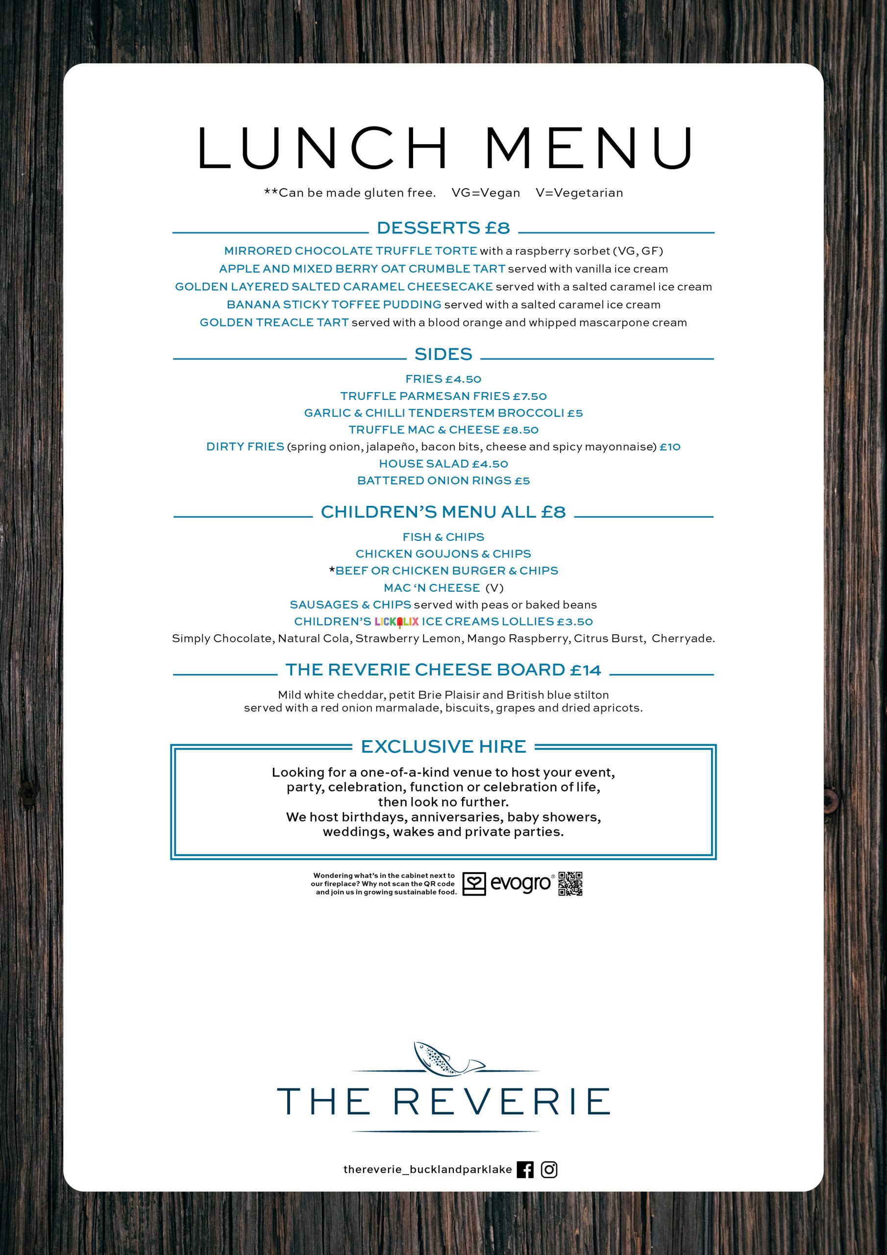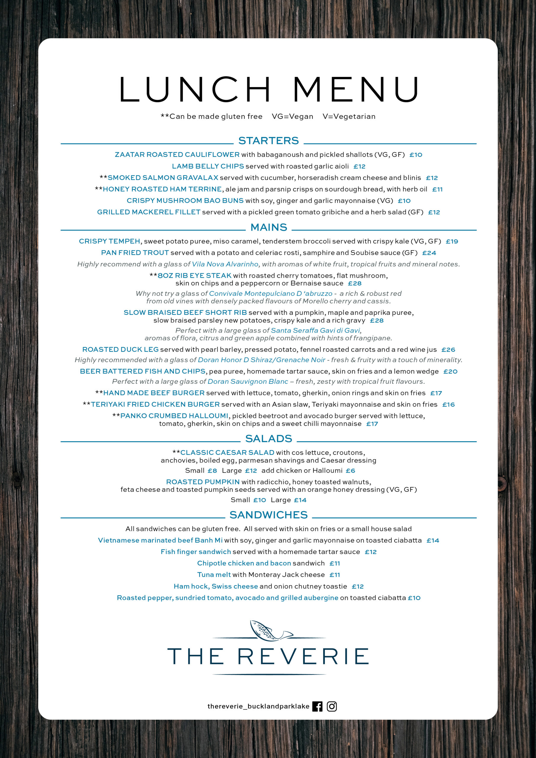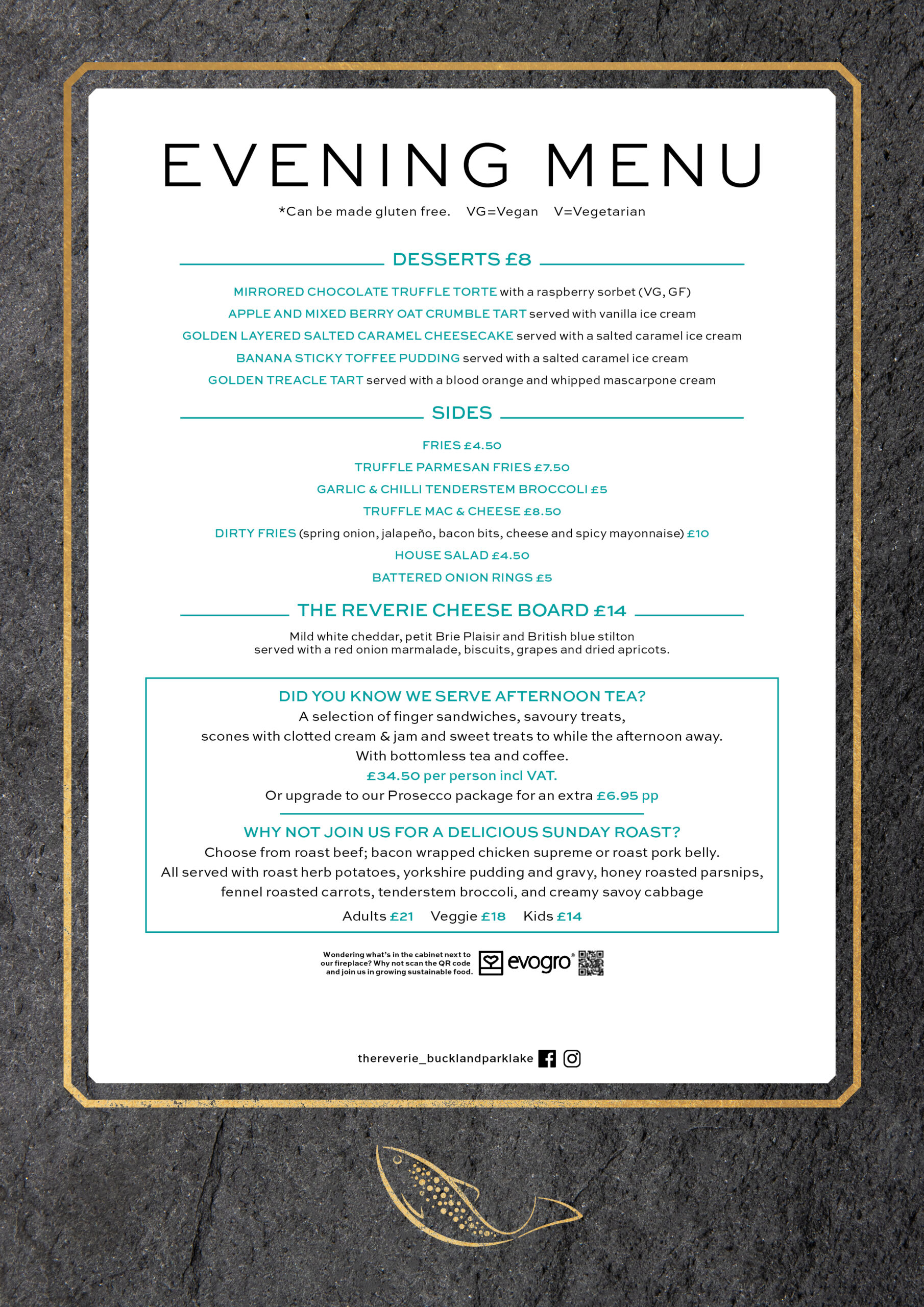Open seven days a week, cooler months in The Reverie are cosy. The log burner is your perfect companion as you appreciate the timeless, frosty views outside, thanks to the restaurant’s large glass frontage.
