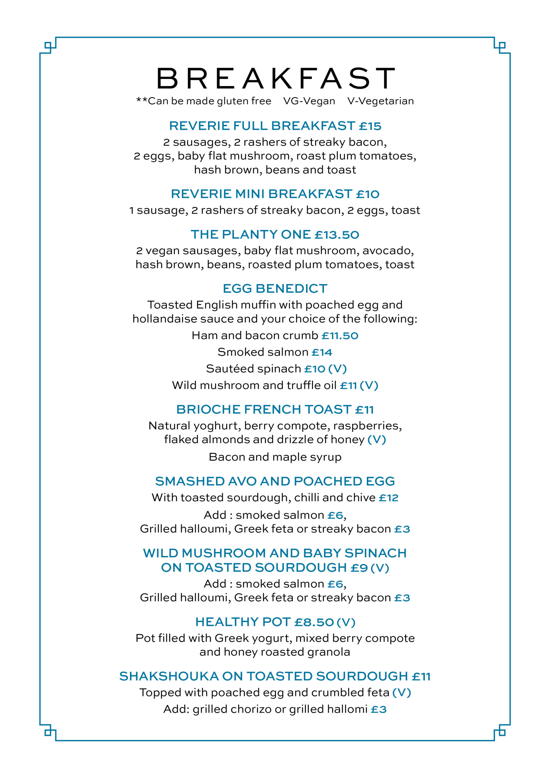 Breakfast 9 – 11:30am