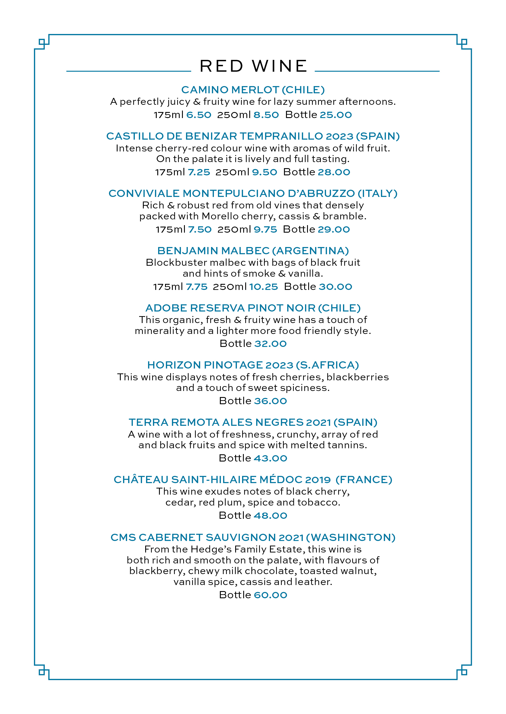 Price includes;