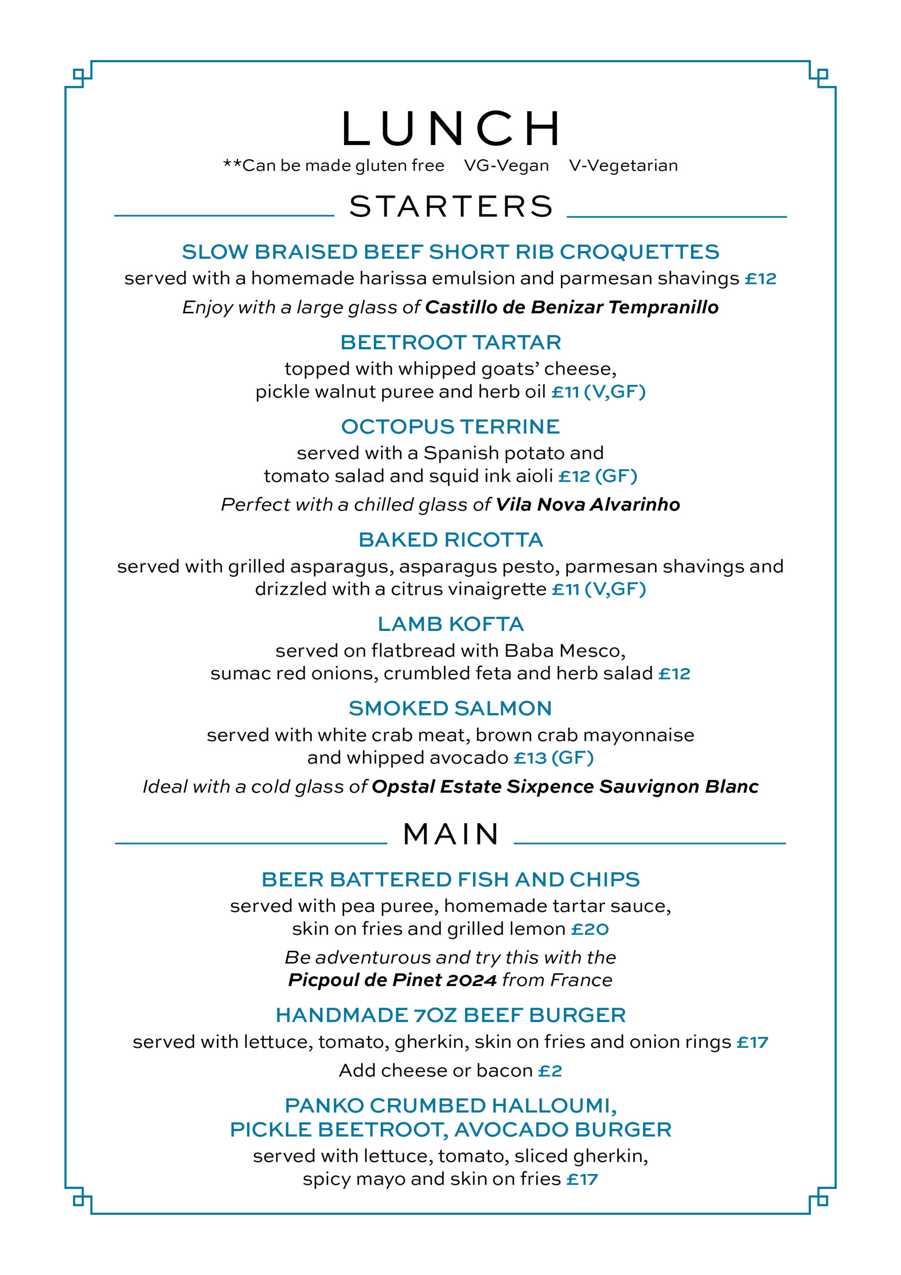 Lunch 12 – 3:30pm